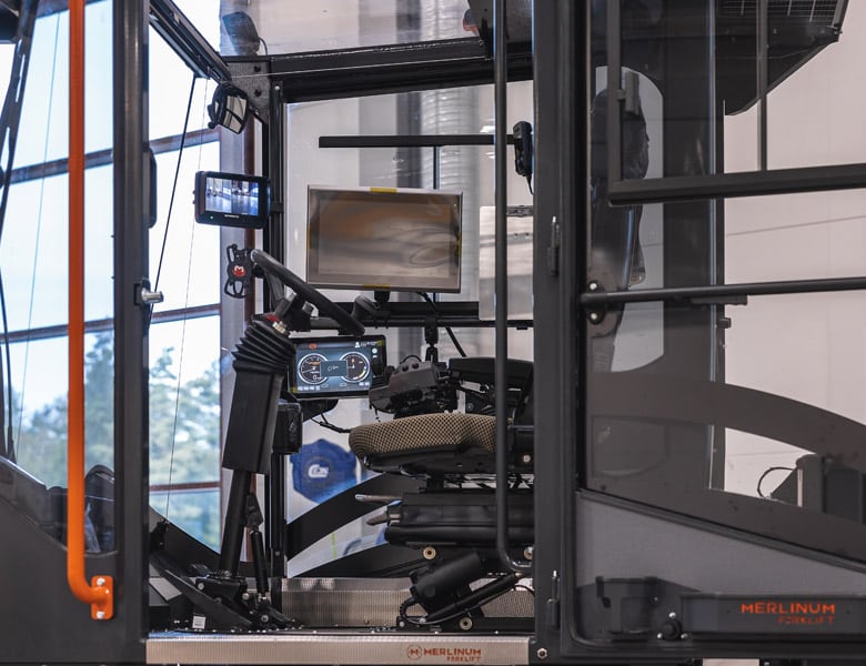 Förarplatsen är utformad med fokus på ergonomi, låg ljudnivå och god sikt. Det ger bättre arbetsmiljö och högre komfort under långa arbetspass.