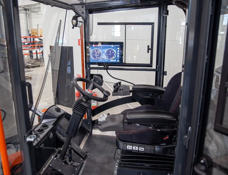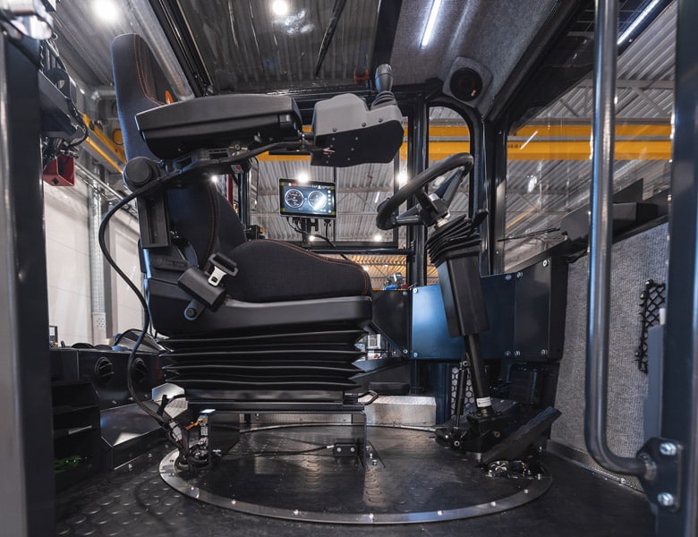 En trygg och effektiv drift börjar med föraren. Därför är förarplatsen utformad med fokus på både ergonomi och säkerhet. Reglage och körposition kan anpassas efter föraren, vilket gör arbetet bekvämare även under längre pass.