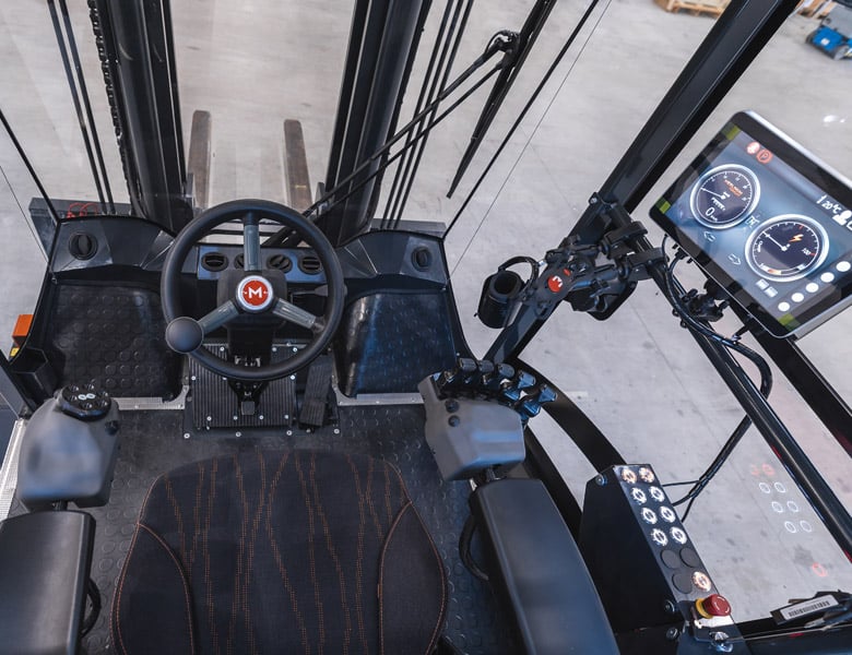 Merlinum Forklifts eltruckar är utvecklade för elektrisk drift, inte ombyggda från diesel. Det märks i konstruktionen, där allt från energianvändning till komponentval är anpassat för eldriftens krav.